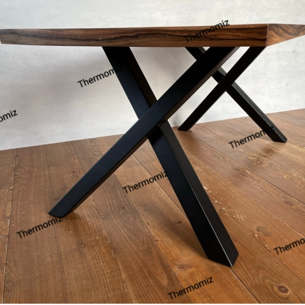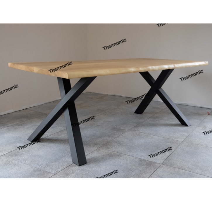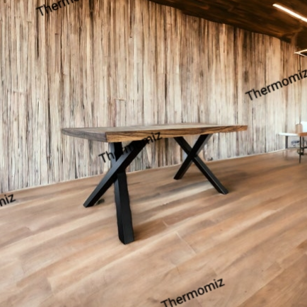 میز ناهارخوری ساخته شده از بدنه محکم ساخته شده با آهن سنگین که تحمل وزن بسیار بالایی داشته و رویه چوب طبیعی ترمو وود قطر 4 سانتیمتر