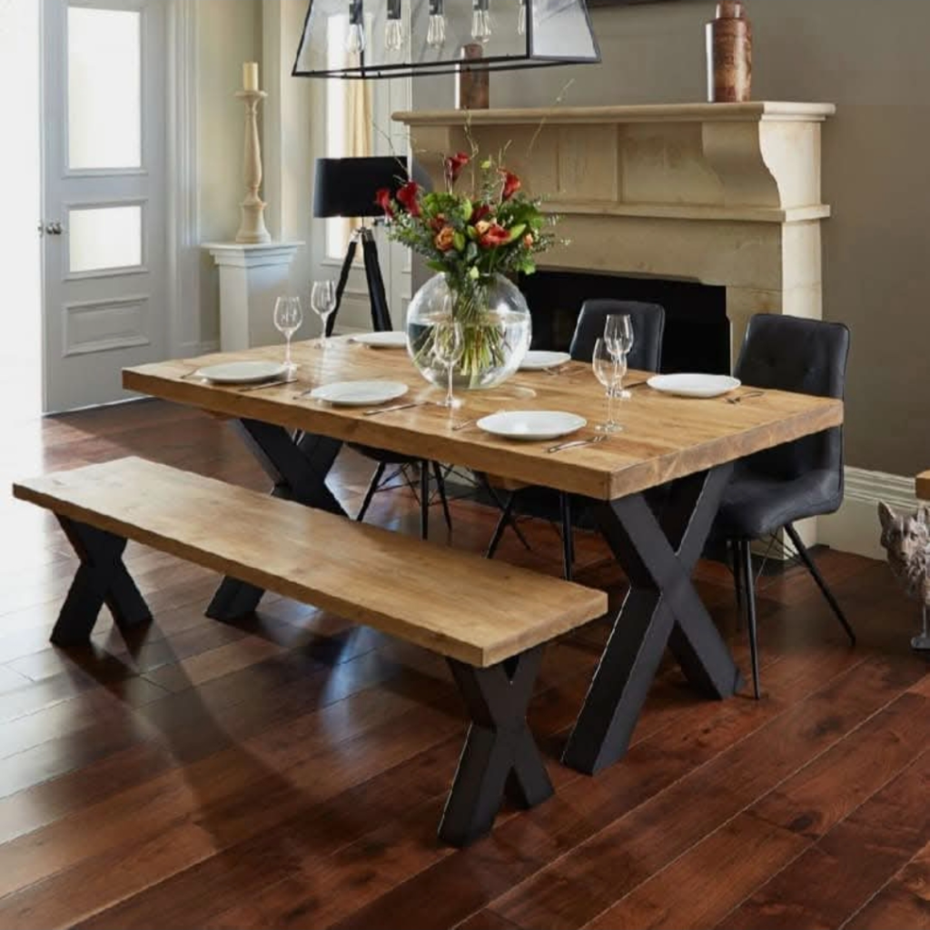 1. یک عدد میز و نیمکت ناهارخوری مشابه عکس با چوب ترمو وود قطر 4 سانتی متر و میز به طول 200 عرض 96 ارتفاع 75 سانتی متر