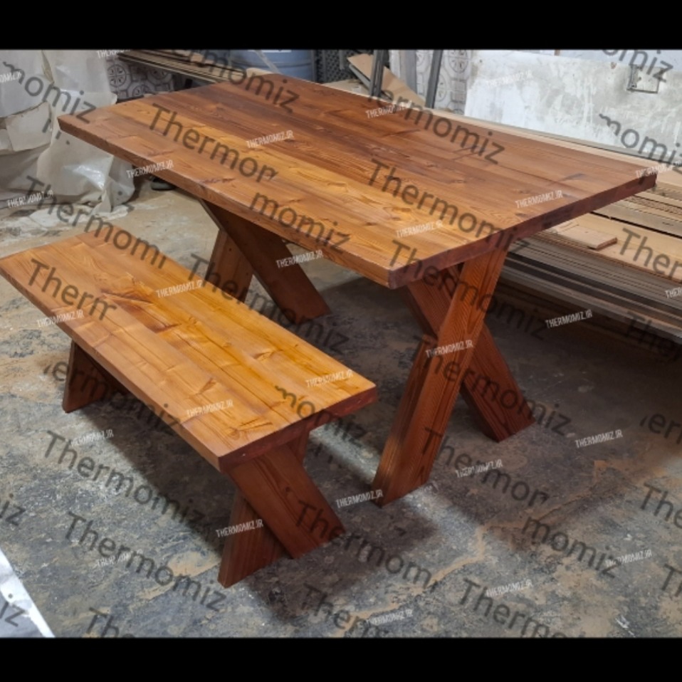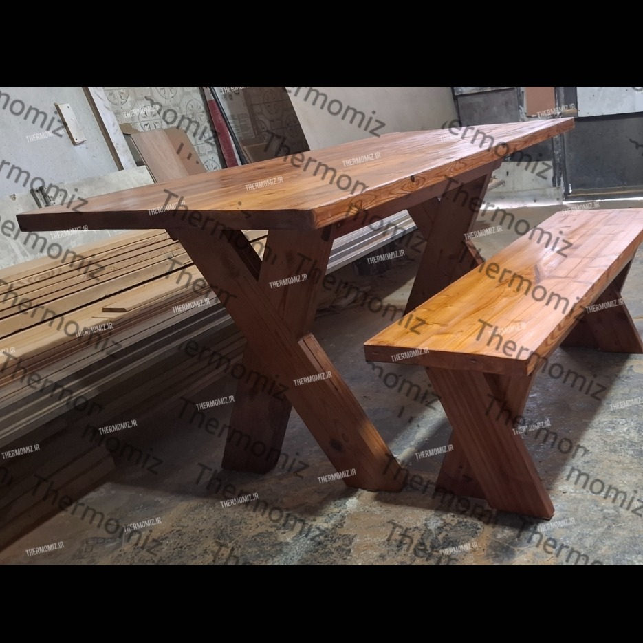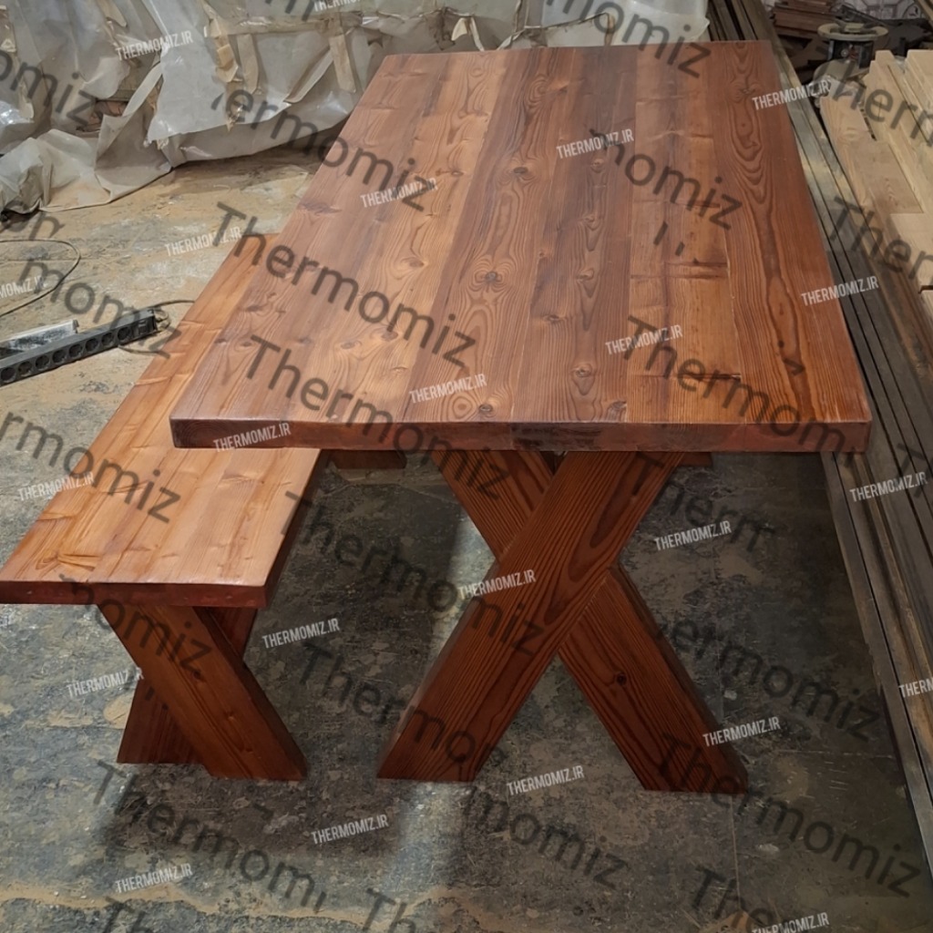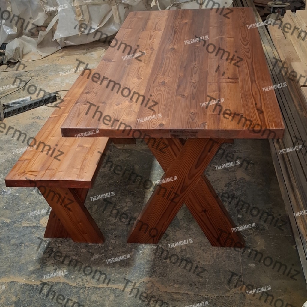 میز و نیمکت ناهارخوری تمام چوب ترمو وود مدل TMD008