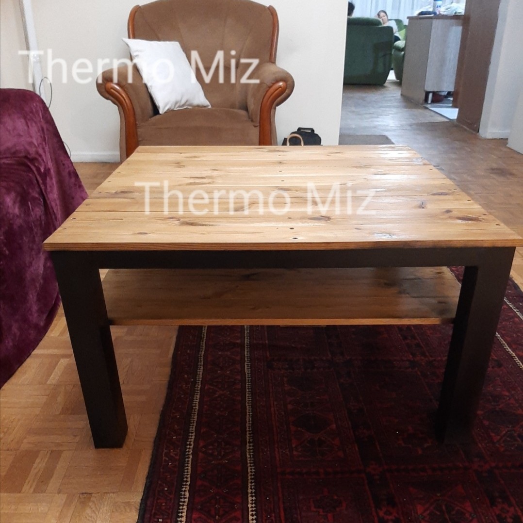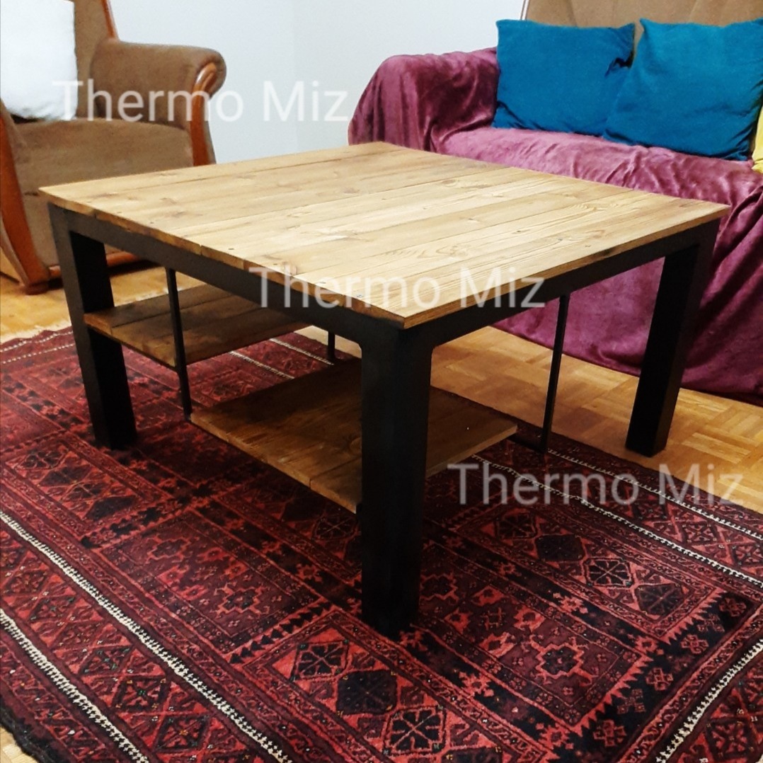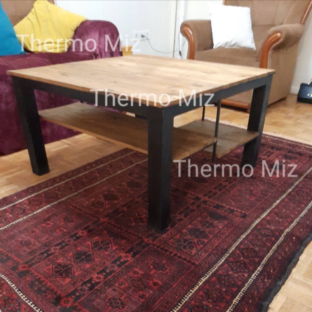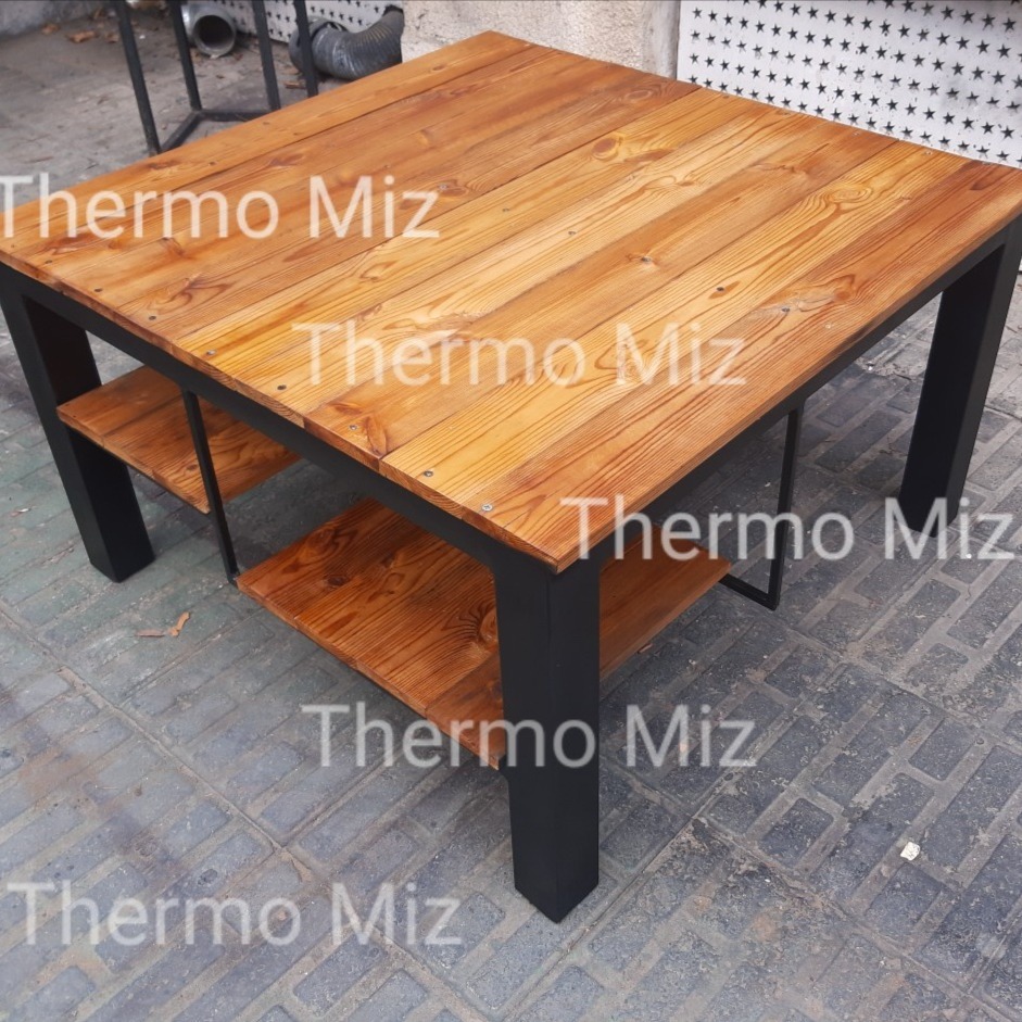 میز جلو مبلی ساختهشده از پروفیل آهن 6در6 سانتی متر برای پایه ها و پروفیل آهن 1در1 سانتی متر برای سایر قسمتها ترکیبی از آهن بزرگ و کوچک ایجاد میکند که با چوب ترمو وود با کیفیت با عمر بسیار طولانی و قابلیت شستشو و ضد آب پوشیده میشود، رنگ پایه میز مشکی مات میباشد جنس رنگ رنگ سوله بسیار با دوام میباشد این محصول خاص توسط طراحان فروشگاه ترمو میز ساخته شده و مشابه آنرا هیچ کجا نخواهید دید