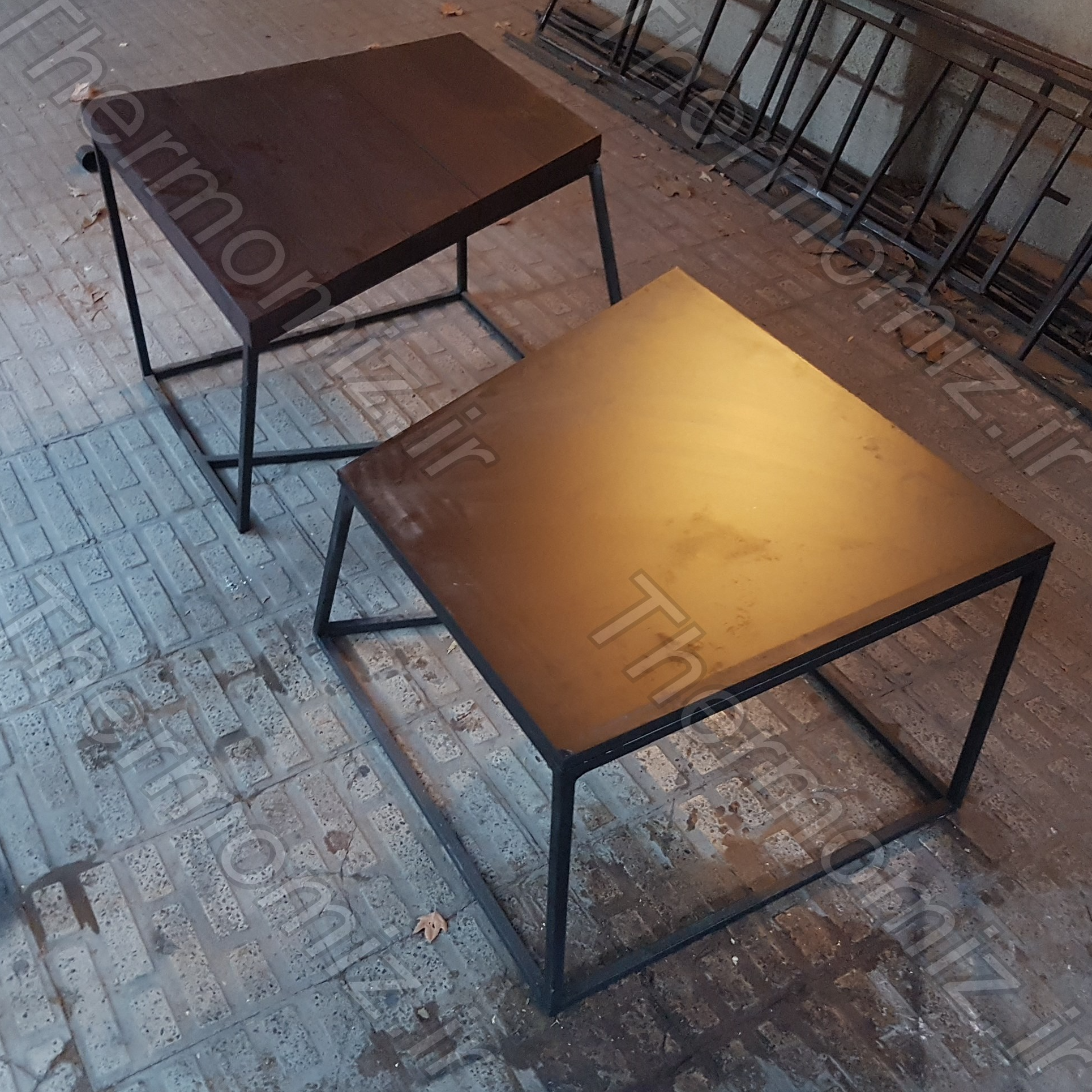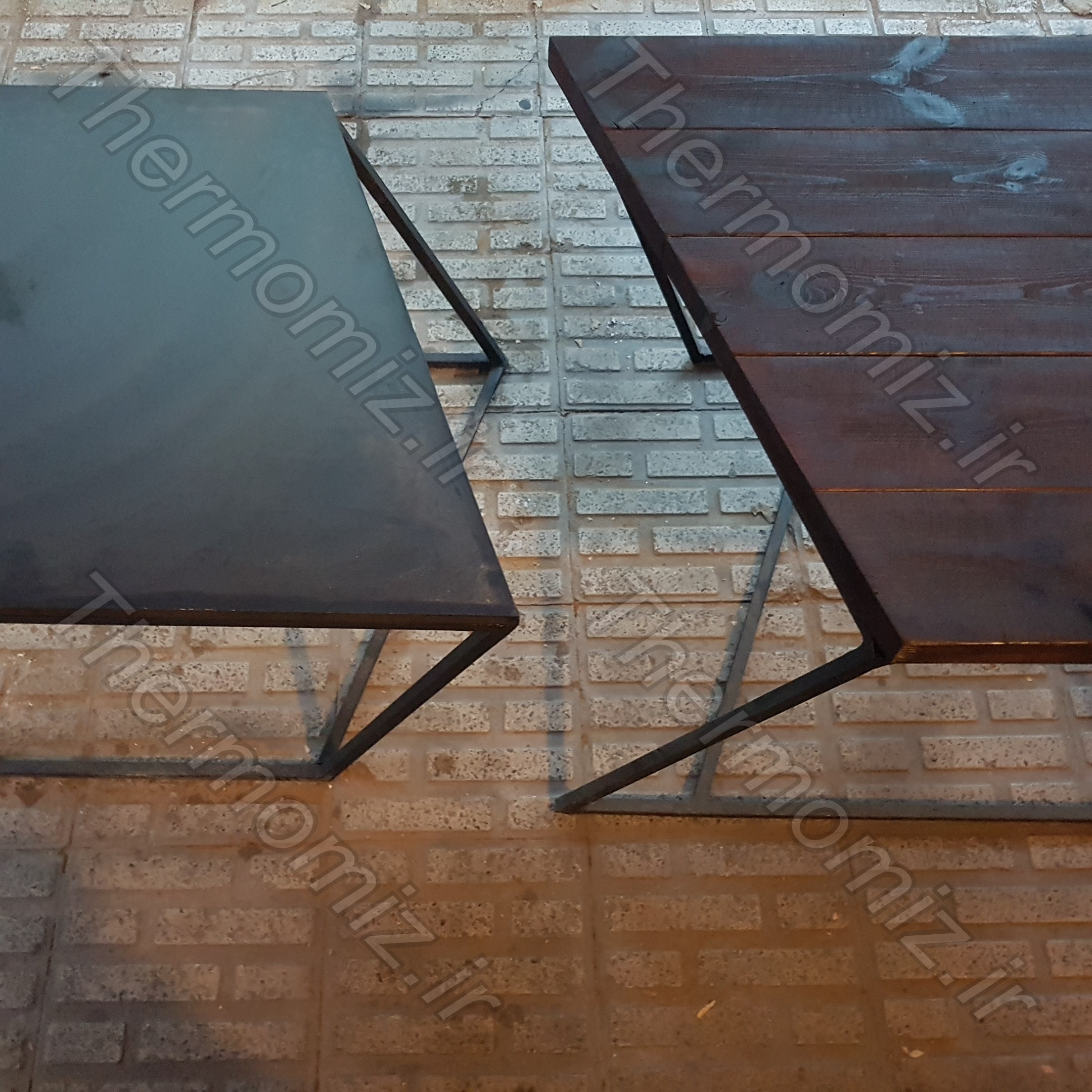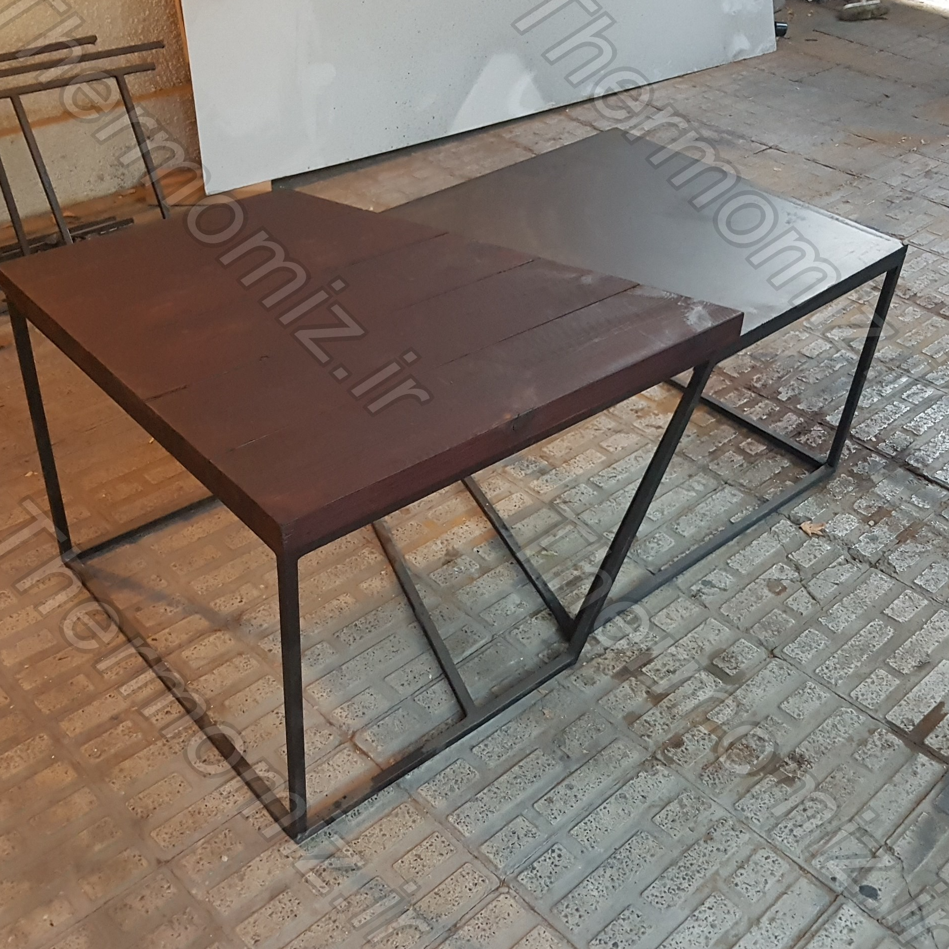 میز از دو بخش تشکیل شده که بخاطر گرفتن جای کمتر توی هم قرار گرفته و قابل استفاده بعنوان یک میز یا دو میز میباشند.یک قسمت میز از MDF و قسمت دیگر از چوب طبیعی ترمو وود ساخته شده است