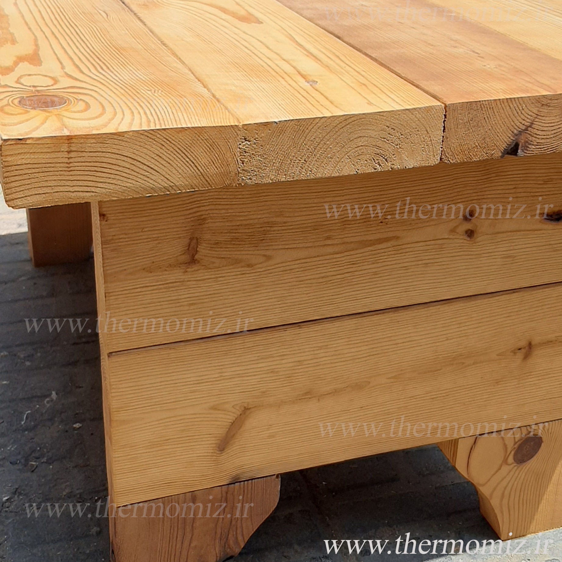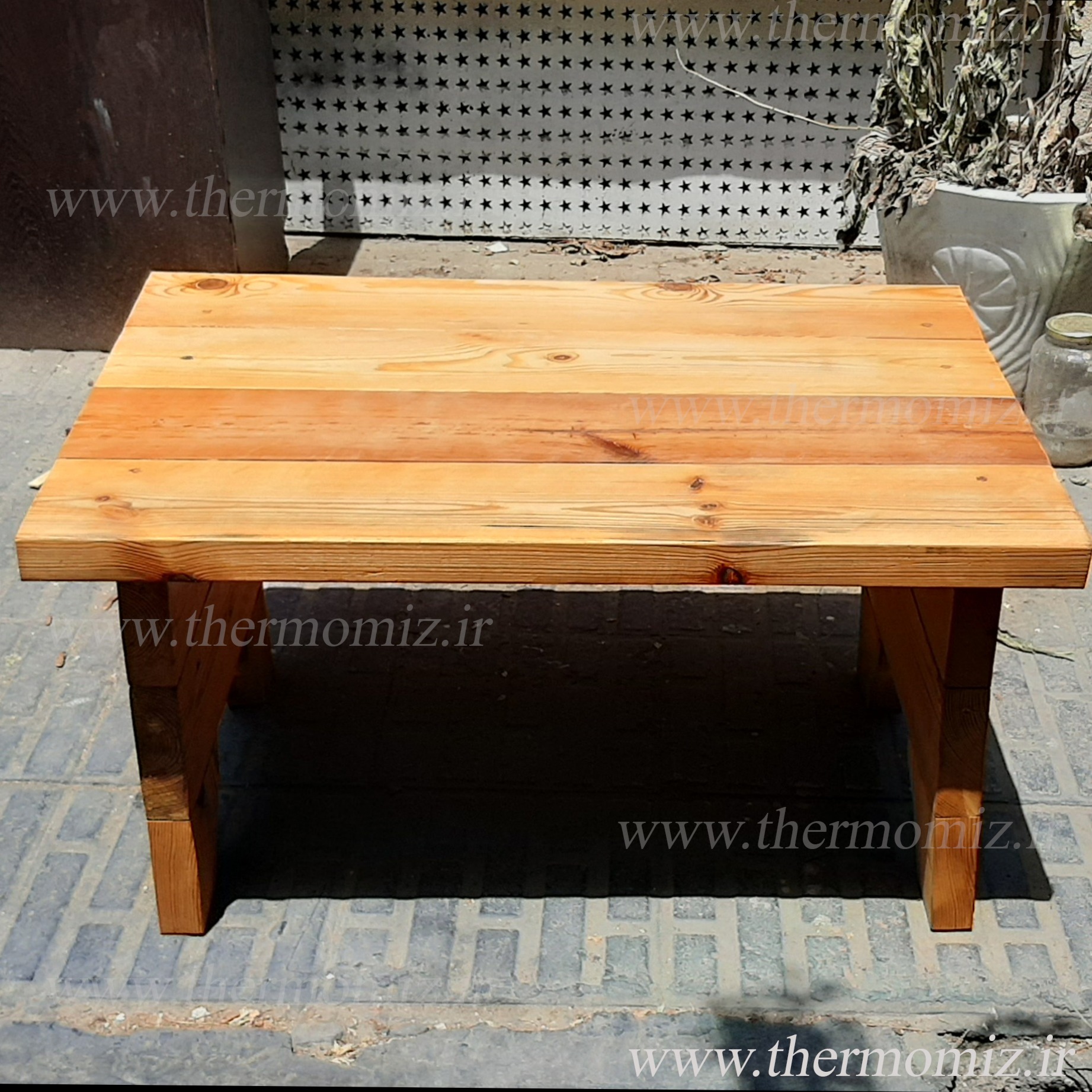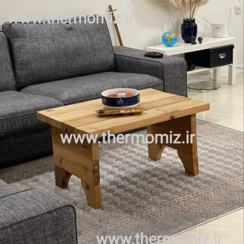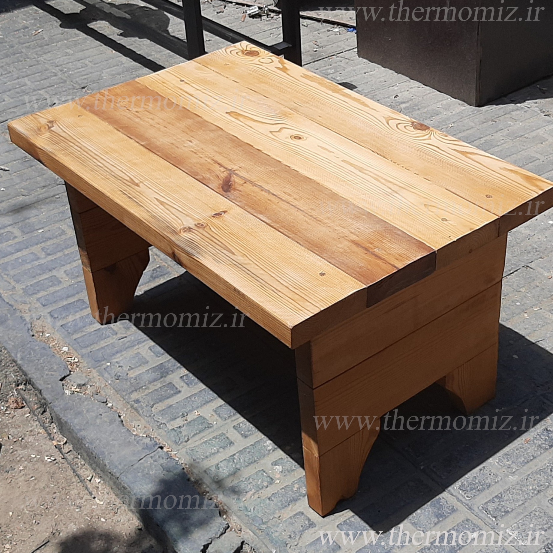 میز پذیرایی جلو مبلی تولید شده با چوب ترمو وود با قطر 4 سانتی متر با ظاهری کلاسیک ،محصول تماما چوبی بوده و ضد آب و حشرات میباشد و تغییر شکل و رنگ در طول زمان نخواهد داشت