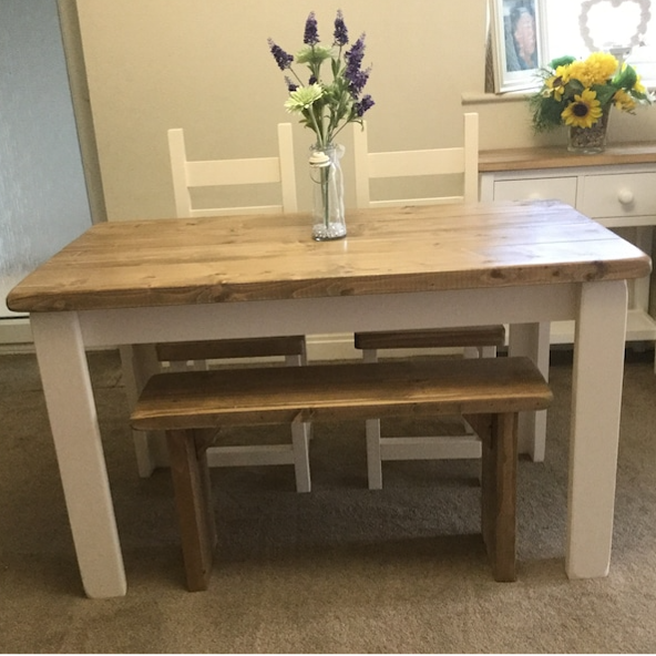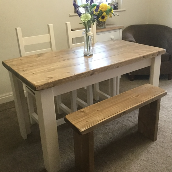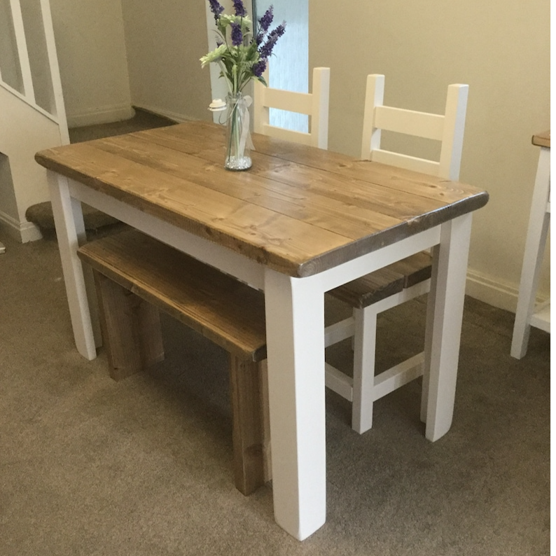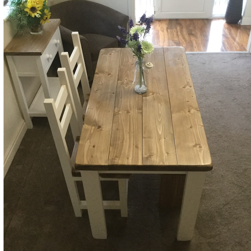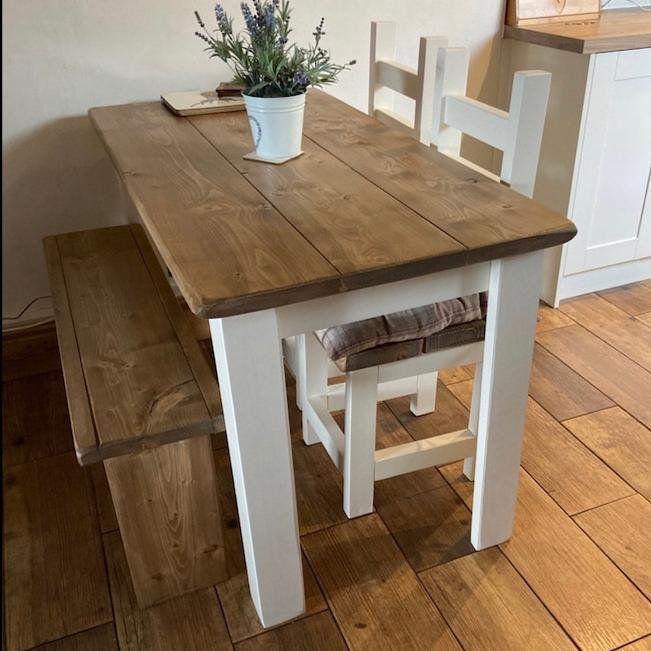 میز دو عدد صندلی و یک عدد نیمکت کاری بسیار جذاب و کلاسیک و محکم